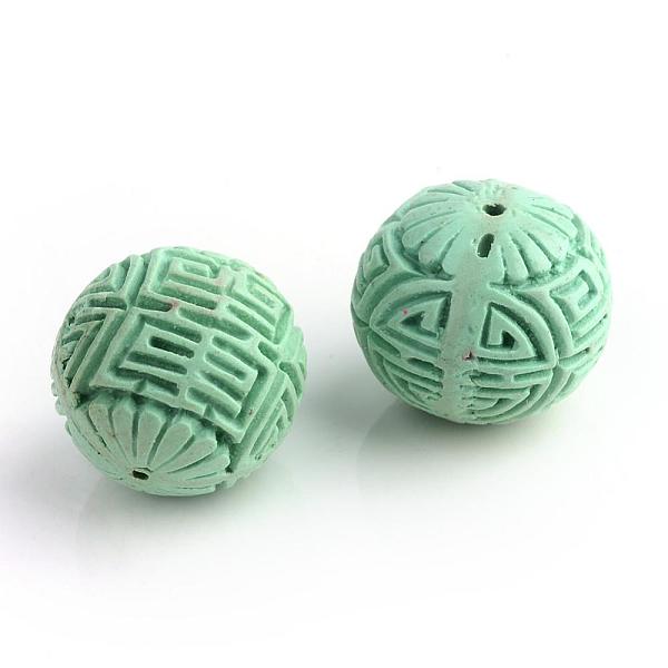 PandaHall Handmade Cinnabar Beads, Carved Lacquerware, Round, Aquamarine, 24x22mm, Hole: 2mm Cinnabar Round Green